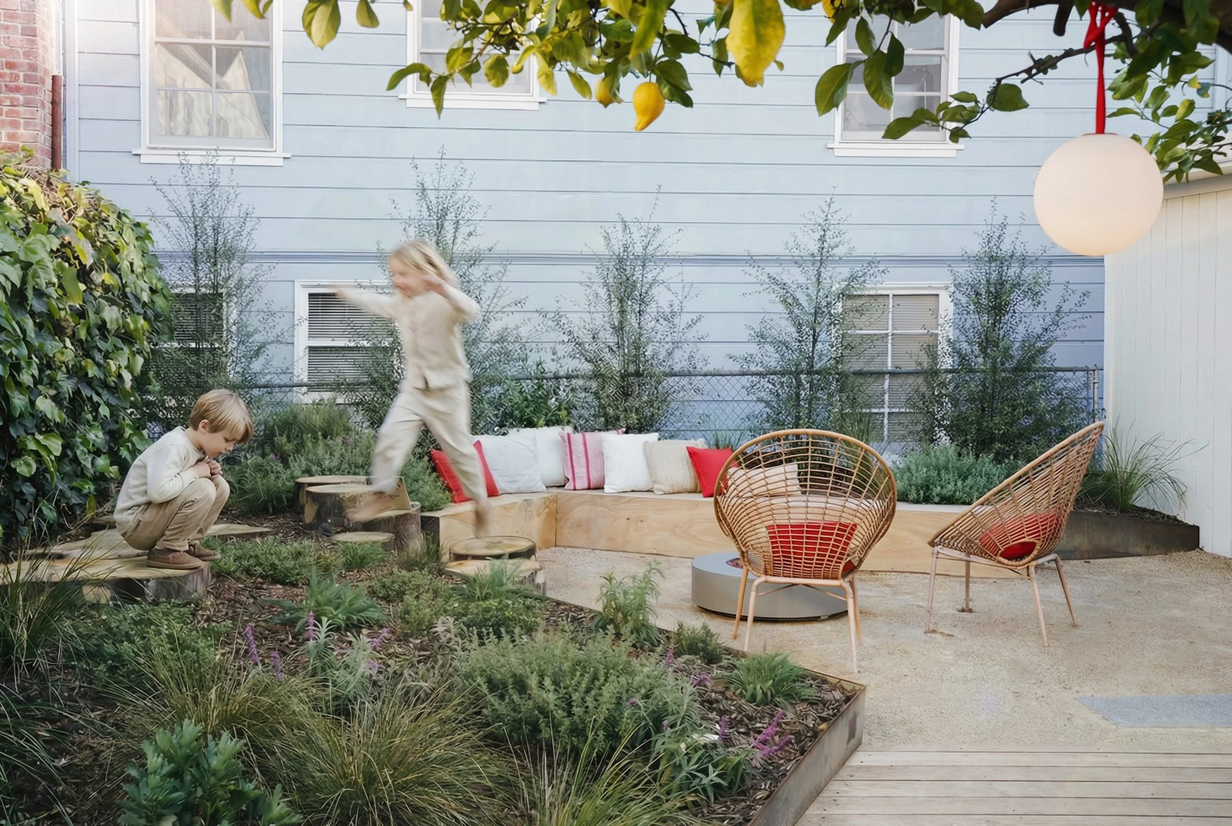 This Oakland residential project showcases a masterclass in nature play by transforming salvaged Deodar Cedar and Eucalyptus into an immersive, sensory-focused backyard landscape. Our team curated a diverse mix of materials, including precision-cut cedar blocks and unique "codominant" Eucalyptus stumps, to encourage tactile exploration and connection to local timber. By repurposing these urban trees, we turned salvaged material into a high-value playground that celebrates the raw, natural geometry of the California environment.